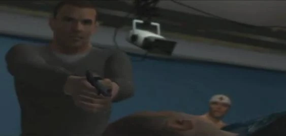 A dream sequence is shown which shows Ben Mitchell running after Eddie. They wind up having a Mexican Stand-off, then Sam interferes and the sequences ends. We also see a flashback with dialog between Danny and Eddie. Eddie finds out that Danny has dealing with Hector, who is a member of the Collins crew. Hector produces 'blue movies' on Peter Street. The mission starts off with you driving. Drive to Hector's film studio. The cops will be looking for you, and so will some gangs. Once you get to the place, get ready to kill a bunch of people as usual. It looks like some 'blue movies' are being filmed on the second floor. There will be a guy with a shotgun, so be careful. When you kill everyone on this level, go up to the next level using the staircase in the backroom. There is a guy with an AK in this area. The car keys are located in the room with the computer and loveseat. They are on the ground by the coffee table.